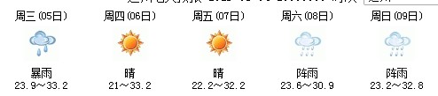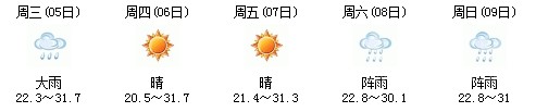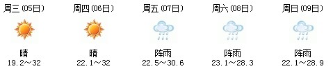 5日白天開始一直到9日,以多云天氣為主,其中7日晚有陣雨,日最高氣溫在30度上下,天氣比較舒適,不會(huì)出現(xiàn)高溫天氣,高考和端午節(jié)期間天氣還是比較給力: