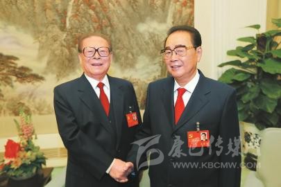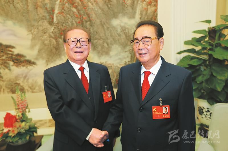 2012年11月8日,在黨的十八大開幕前,江澤民同志同李鵬同志在一起。新華社記者 蘭紅光 攝