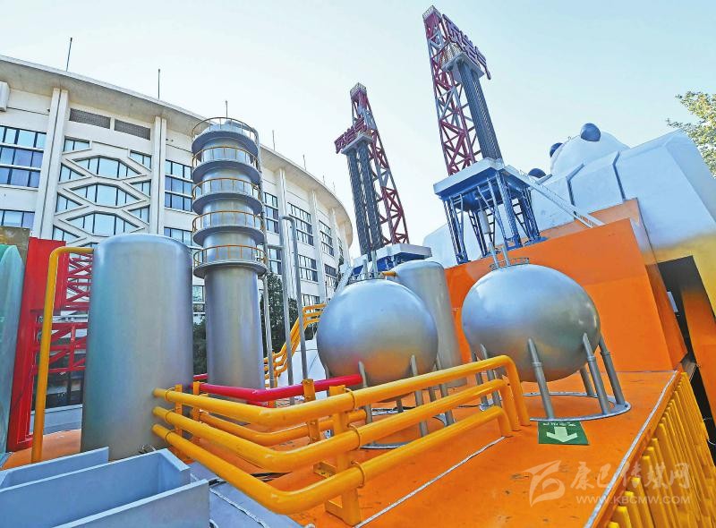 彩車上的新能源頁(yè)巖氣開(kāi)發(fā)設(shè)施造型。川報(bào)記者肖雨楊攝