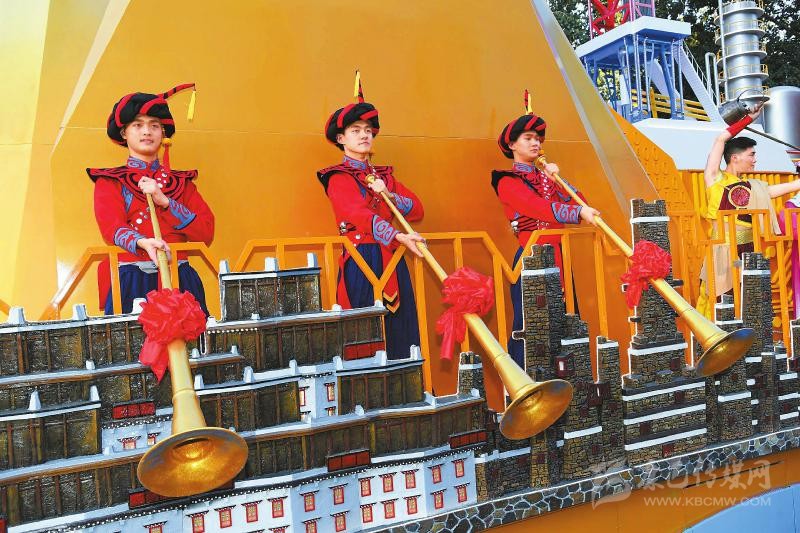 他介紹,在彩車裝飾元素上,彩車從生態(tài)、產(chǎn)經(jīng)、人文歷史、幸福生活以及精神面貌五方面入手,遵循“唯一性、第一性和前三甲”三大標(biāo)準(zhǔn),精選能代表四川社會(huì)經(jīng)濟(jì)發(fā)展成就的元素符號(hào)。他舉例,“成都是全國(guó)第三大信息技術(shù)庫(kù),因此,我們選用了電子信息墻,用計(jì)算機(jī)語(yǔ)言把三星堆未破解的文字符號(hào)給表達(dá)出來(lái)?!?/p>