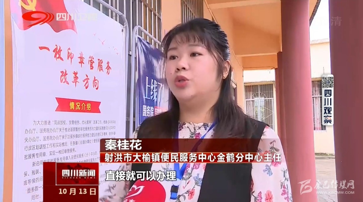 射洪市大榆鎮(zhèn)便民服務(wù)中心金鶴分中心主任秦桂花說:“現(xiàn)在這個一枚印章整合之后 這邊分中心直接就可以辦理 非常的便民?!?nbsp;