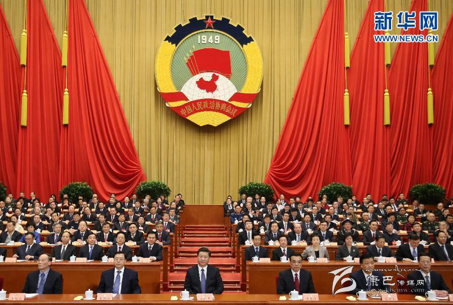人民大會(huì)堂萬人大禮堂內(nèi)氣氛莊重?zé)崃?,象征全國各族人民大團(tuán)結(jié)的政協(xié)會(huì)徽懸掛在主席臺(tái)正中,十面鮮艷的紅旗分列兩側(cè)。