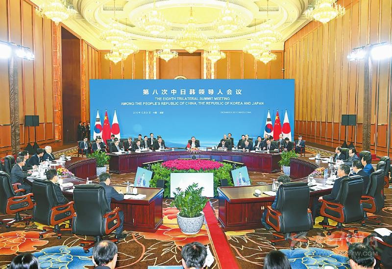 十二月二十四日,國務院總理李克強在成都與韓國總統(tǒng)文在寅、日本首相安倍晉三共同出席第八次中日韓領導人會議。新華社記者 張領 攝