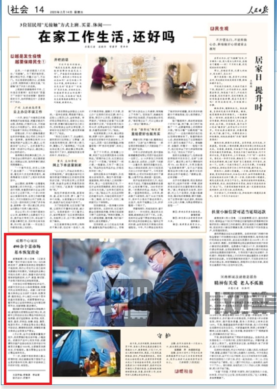 2月14日出版的《 人民日報 》報道了成都市為有效應(yīng)對疫情穩(wěn)定經(jīng)濟運行,出臺20條政策措施,保障市民生活物資供應(yīng)的舉措。目前,成都市市場供應(yīng)充足。