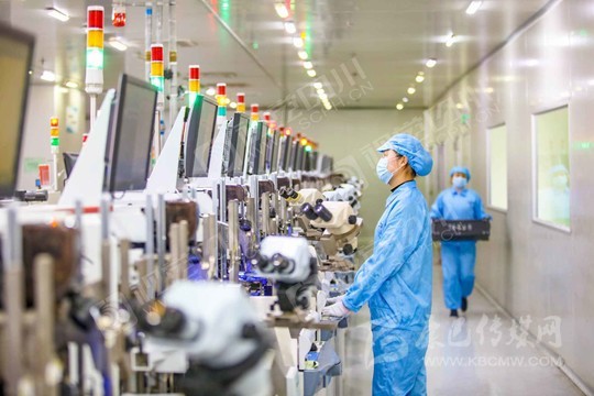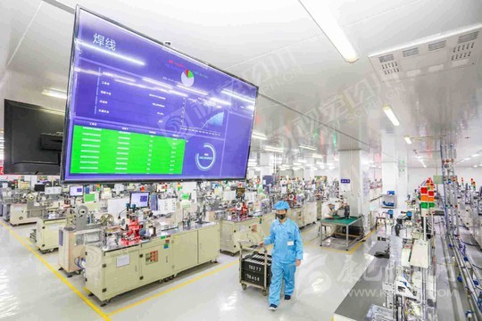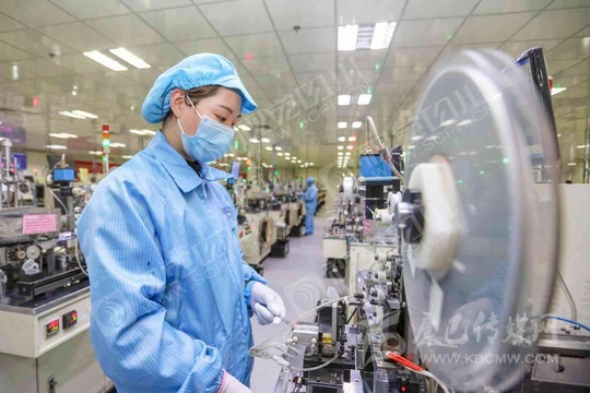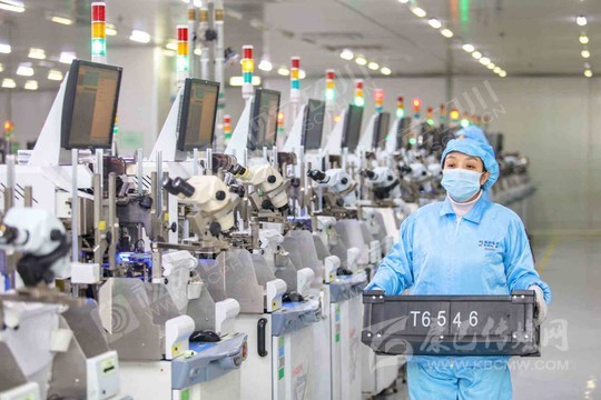 遂寧市經(jīng)開(kāi)區(qū)藍(lán)彩電子智能信息化車間,工人正在生產(chǎn)線開(kāi)足馬力加緊生產(chǎn)。