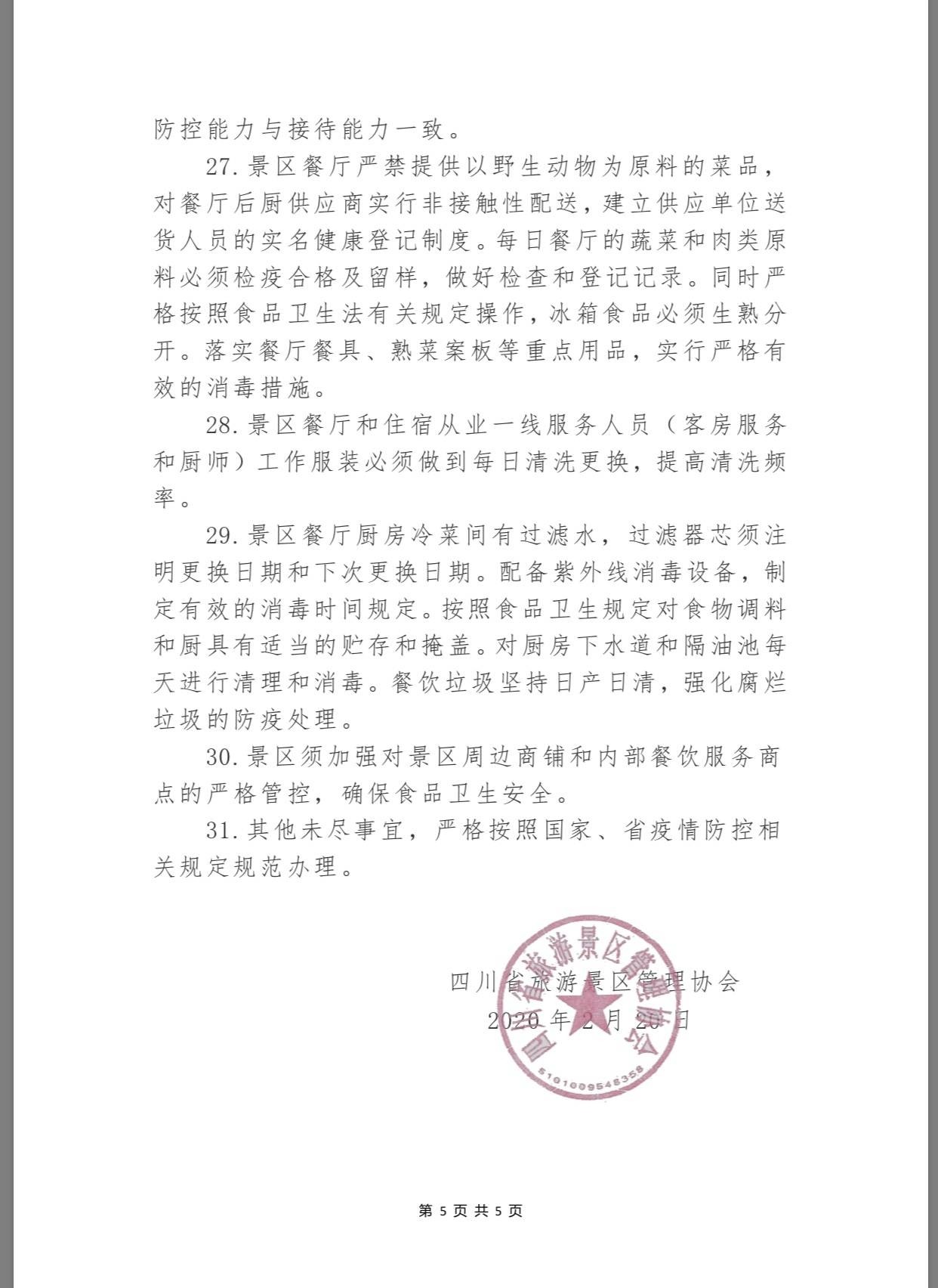 2月20日,四川省旅游景區(qū)管理協(xié)會(huì)對(duì)外發(fā)布《四川省新型冠狀肺炎疫情防控期間旅游景區(qū)開放工作指南》(以下簡(jiǎn)稱“《指南》”),對(duì)此前因疫情防控暫時(shí)關(guān)閉的景區(qū)恢復(fù)開放“指點(diǎn)迷津”,提出景區(qū)須通過網(wǎng)絡(luò)實(shí)名制購(gòu)票,日接待量不超過日最大承載量的50%,景區(qū)要設(shè)立臨時(shí)隔離點(diǎn)等。