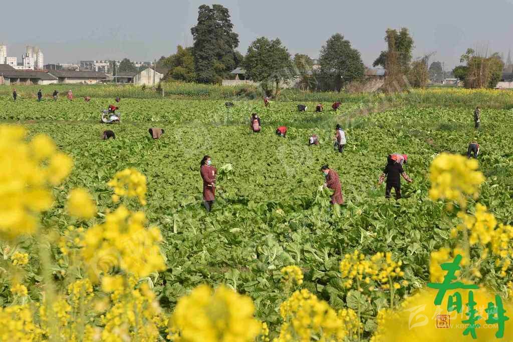 綿竹市紫巖街道雙坪村5組,當(dāng)?shù)剞r(nóng)戶在天佑家庭農(nóng)場(chǎng)收割青菜,以便騰地后用于水稻生產(chǎn)。
