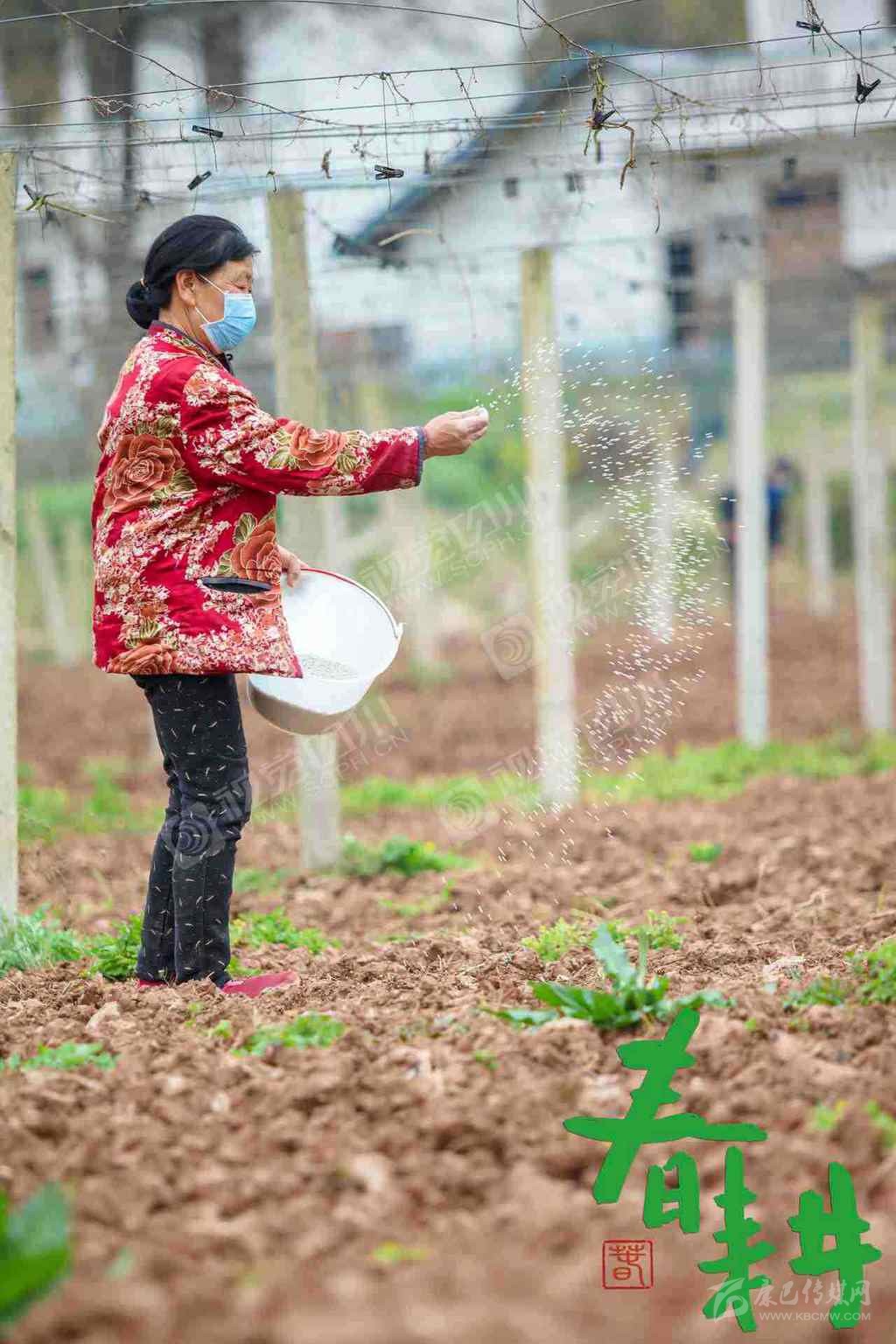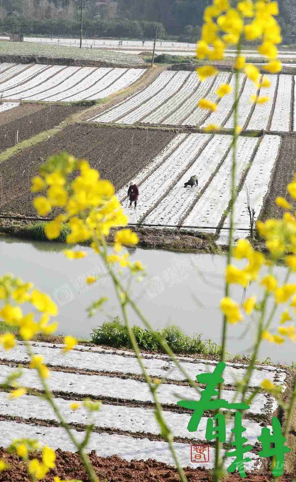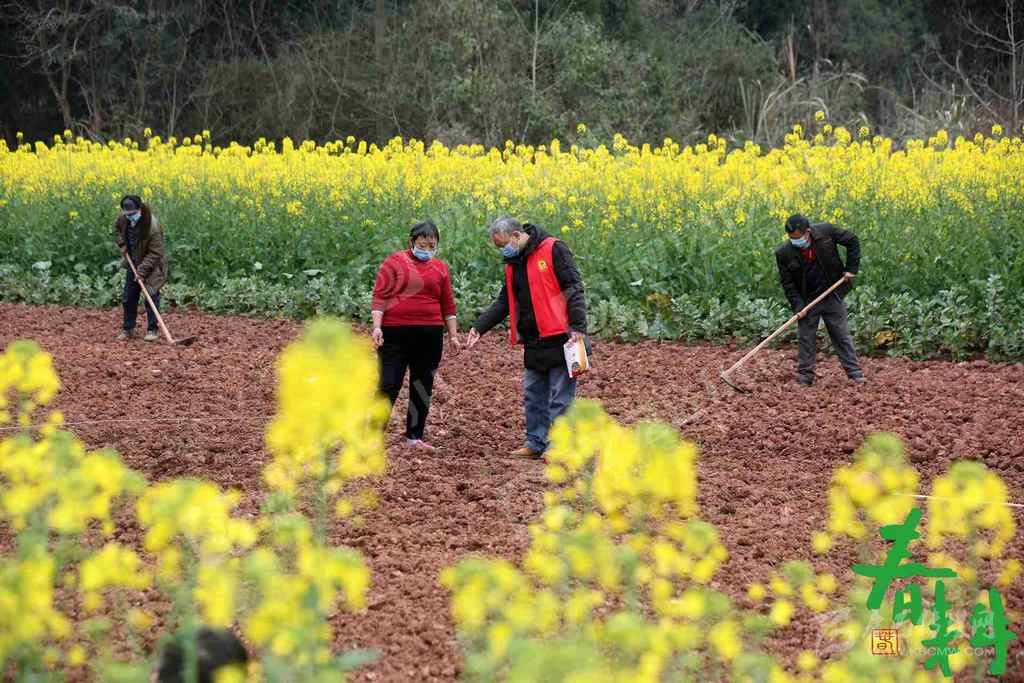 內(nèi)江市東興區(qū)富溪鎮(zhèn)太平壩村,戴著口罩的村民抓住晴好天氣忙著備耕。