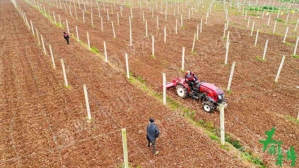 巴中市恩陽區(qū)上八廟鎮(zhèn)安居村的葡萄產(chǎn)業(yè)園里,產(chǎn)業(yè)員工佩戴口罩,分散在產(chǎn)業(yè)園里施肥。