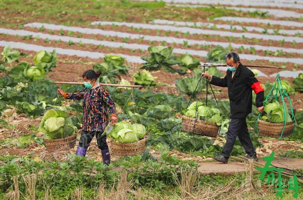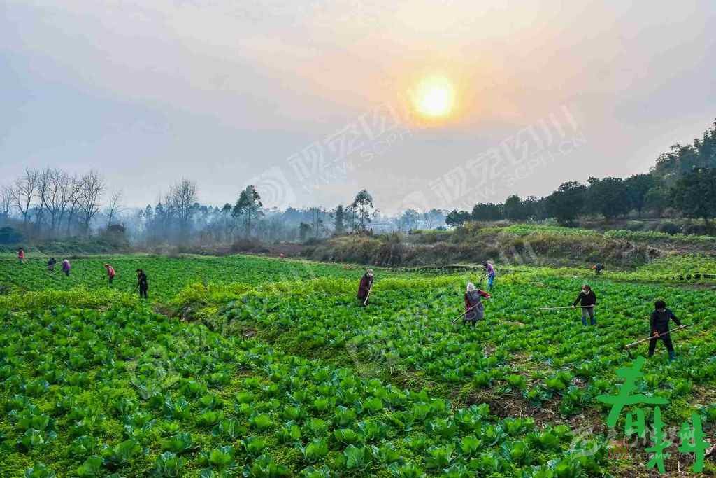 廣安市廣安區(qū)大龍鎮(zhèn)光明村村民在甘藍(lán)地里春管除草。