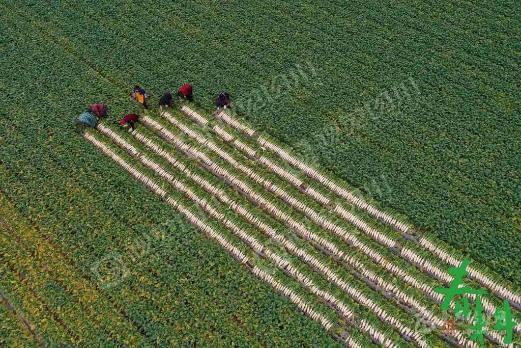 南充嘉陵區(qū)河西鎮(zhèn),農(nóng)業(yè)工人正在采收白白的大蘿卜。
