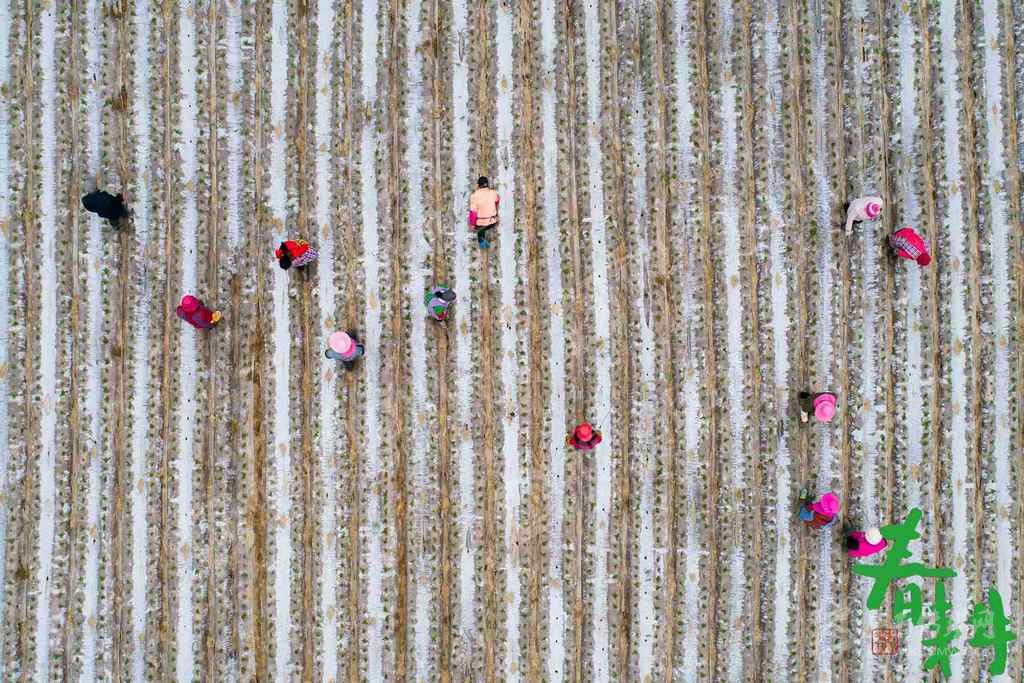 遂寧市蓬溪縣紅江村村民正在田間管理剛剛出土的蘿卜苗。