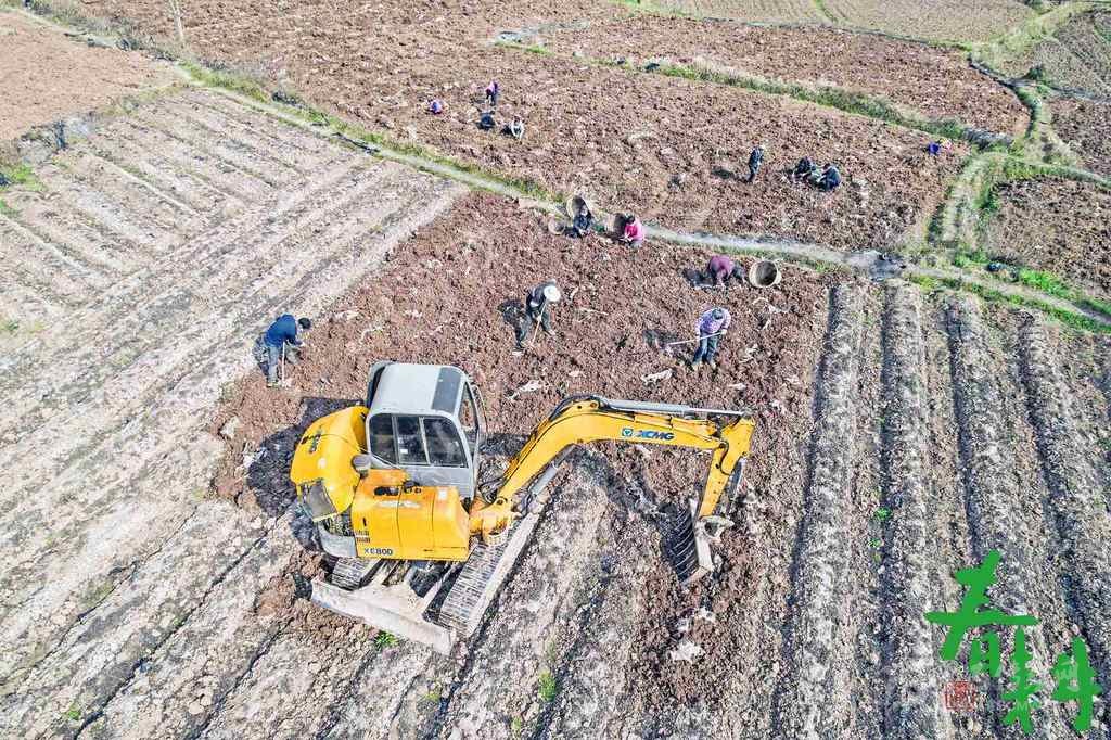 遂寧市安居區(qū)橫山鎮(zhèn)船形村村民正在地里耕地、播種、施肥。