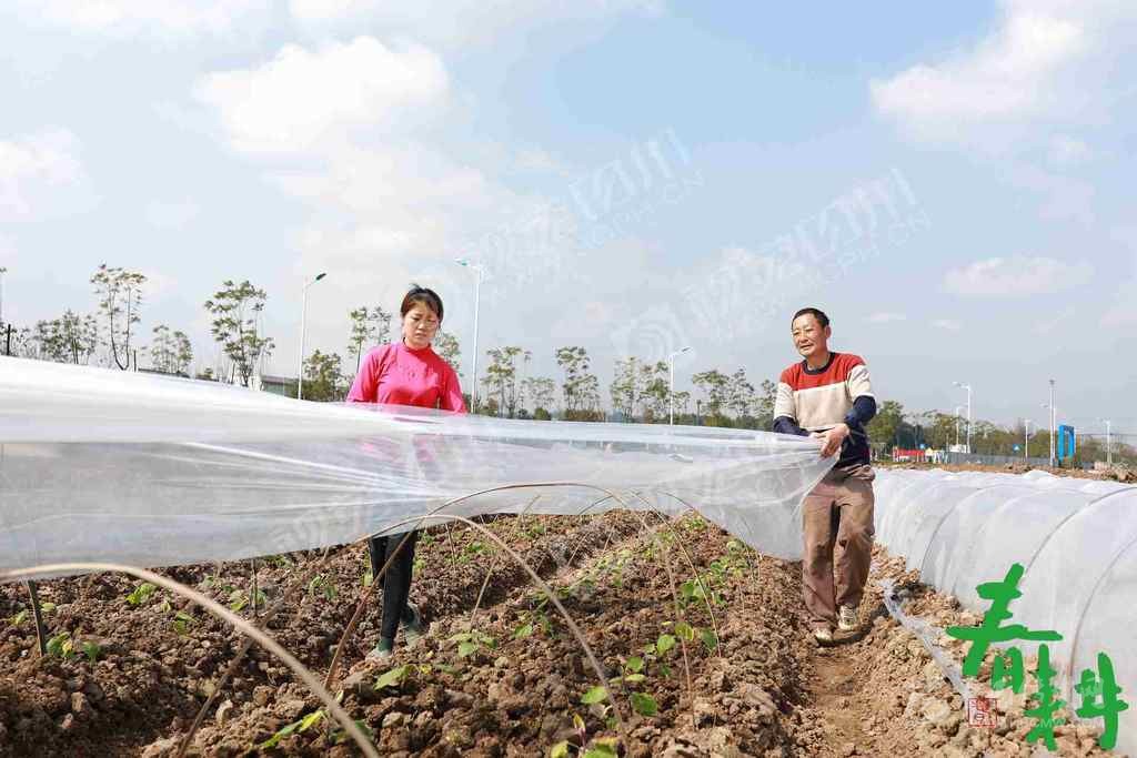 閬中市彭城鎮(zhèn)五谷臺(tái)村,村民在精心管護(hù)蔬菜,把菜苗從薄膜里“掏出來”。