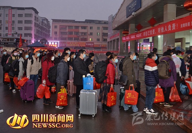 2月21日早上7時(shí)58分,乘載著1058名廣安籍農(nóng)民工的K4201返崗專列,準(zhǔn)時(shí)出發(fā)駛往廣州站。這是今年春節(jié)后四川省開(kāi)往各地的農(nóng)民工返崗專列中人數(shù)最多的一趟。從家門口到廠房,都有專車接送,廣安籍農(nóng)民工享受的是“一條龍”無(wú)縫對(duì)接服務(wù)。