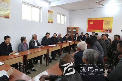 3月17日,習近平在東壩頭鄉(xiāng)張莊村村委會與干部群眾座談,聽取意見和建議。