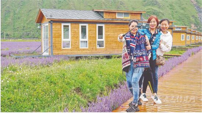 康定市新都橋薰衣草花海游人眾多。