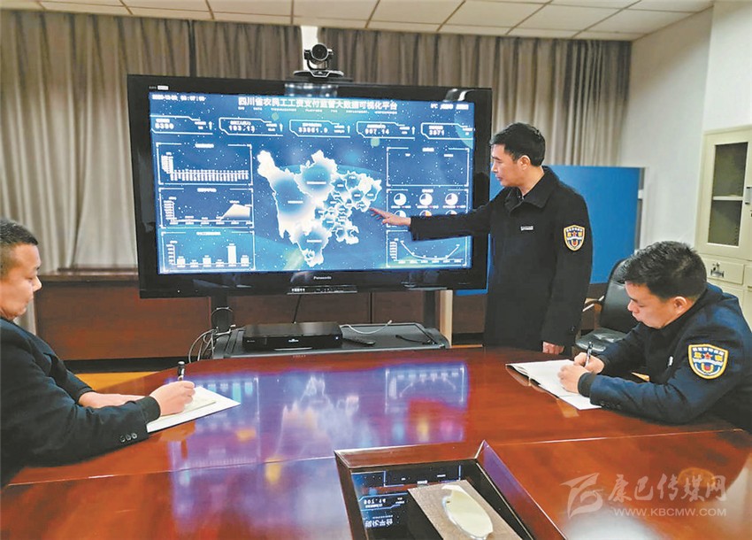 省勞動保障監(jiān)察總隊工作人員通過“四川省農(nóng)民工工資支付監(jiān)管大數(shù)據(jù)可視化平臺”,對全省建筑施工項目工資支付情況進(jìn)行分析。