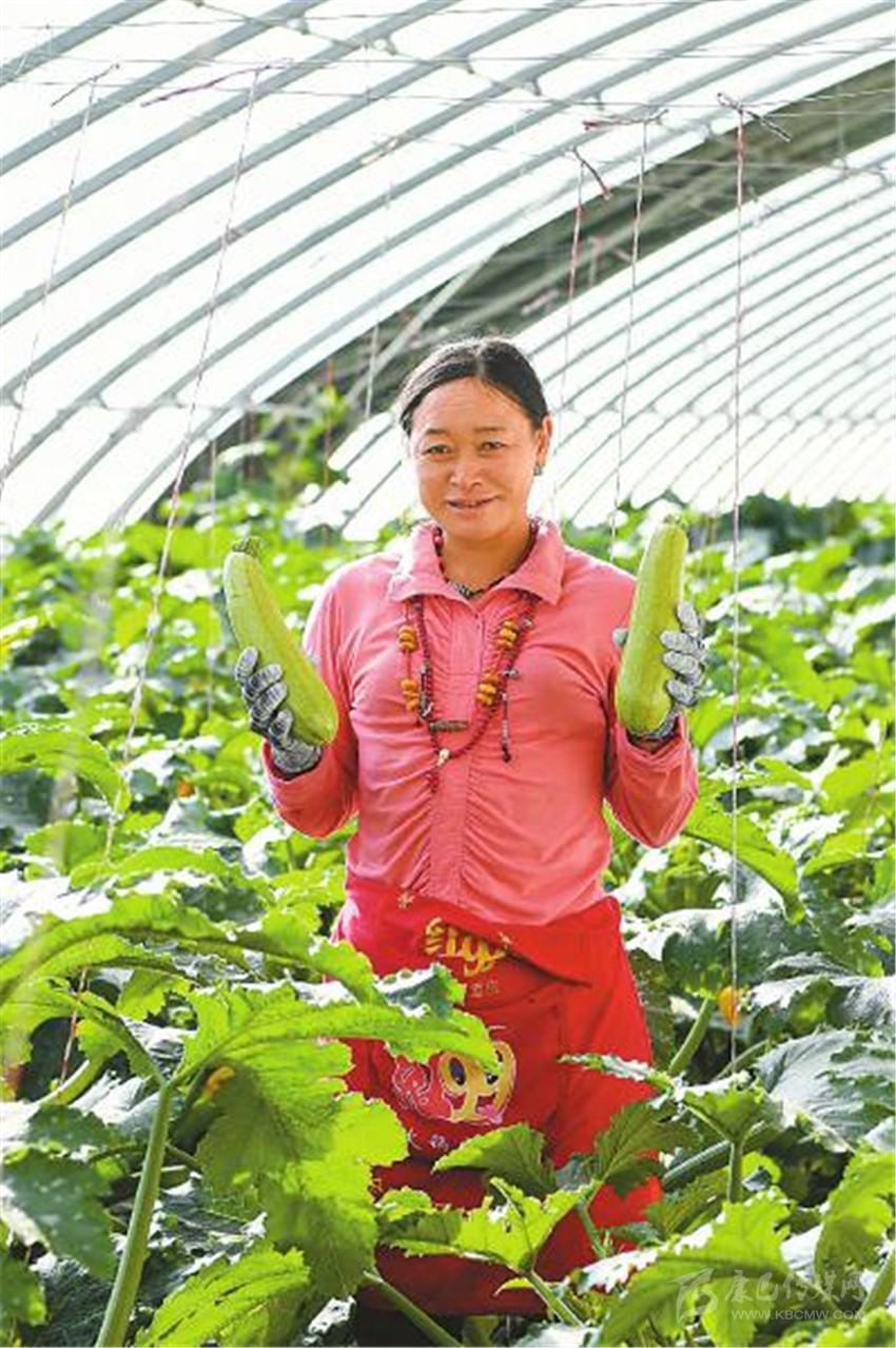 近日,在鄧瑪農(nóng)業(yè)觀光產(chǎn)業(yè)科技示范園內(nèi)工作的村民展示剛摘下的西葫蘆。 四川日?qǐng)?bào)全媒體記者 楊樹(shù) 攝