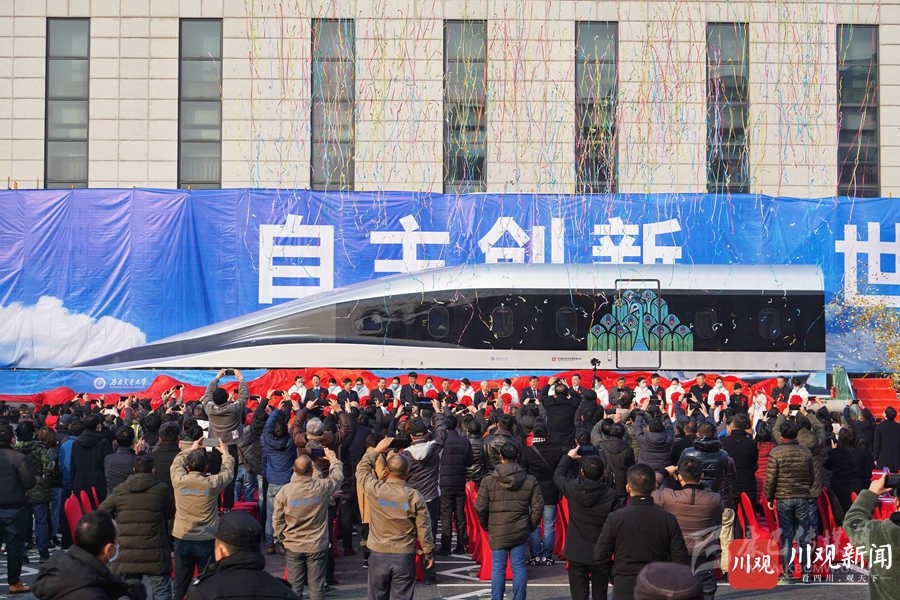 2021年1月13日上午,具有完全自主知識(shí)產(chǎn)權(quán)的高溫超導(dǎo)高速磁浮工程化樣車及試驗(yàn)線在西南交通大學(xué)九里校區(qū)正式啟用。華小峰 攝
