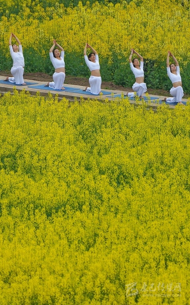在南充市蓬安縣新園鄉(xiāng)踏坡梁村,來自省內(nèi)外的游客在數(shù)千畝油菜地里練瑜伽、騎賽車、秀旗袍、放風(fēng)箏。尹鋼 攝 (資料圖)