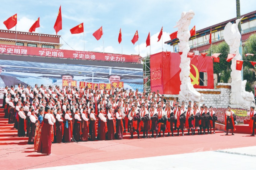 九龍縣86歲的老黨員馬加子,已有65年的黨齡。6月28日,接過紀(jì)念章時(shí),老人激動(dòng)得熱淚盈眶。馬加子深知共產(chǎn)黨人要有擔(dān)當(dāng),先后為汶川地震、新冠肺炎防疫工作等捐款,并時(shí)刻教導(dǎo)后輩不忘黨恩國情,他說:“我從來沒有違反過黨的組織紀(jì)律,也不許我身邊的人違反,我是奴隸出身,要是沒有共產(chǎn)黨來解放我們,帶領(lǐng)我們走向新生活,我們一家也不可能有現(xiàn)在的幸福生活。沒有共產(chǎn)黨就沒有新中國!”