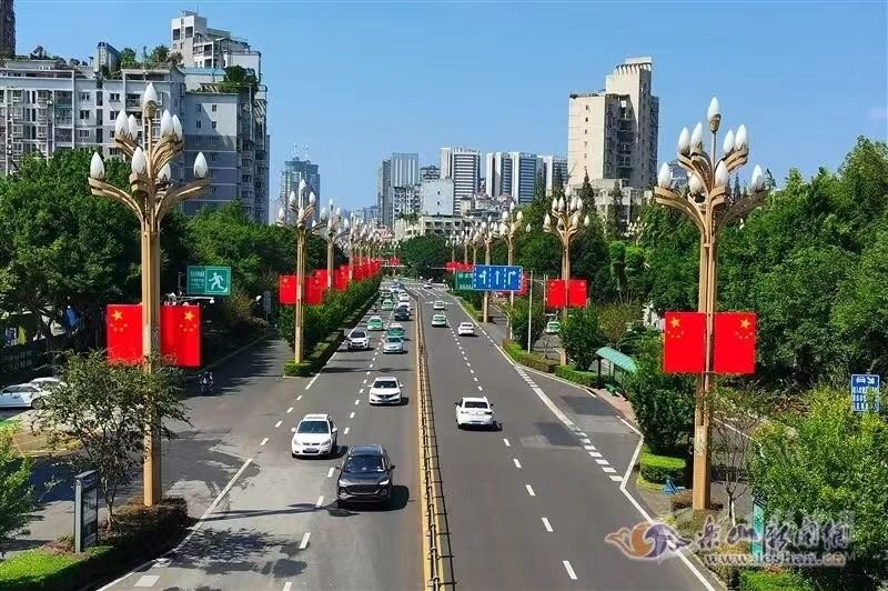 花團錦簇、紅旗飄飄……在遂寧,主要街道及重點區(qū)域紛紛懸掛鮮艷的五星紅旗,形成一片片“紅色的海洋”,洋溢著濃濃的節(jié)日氛圍。