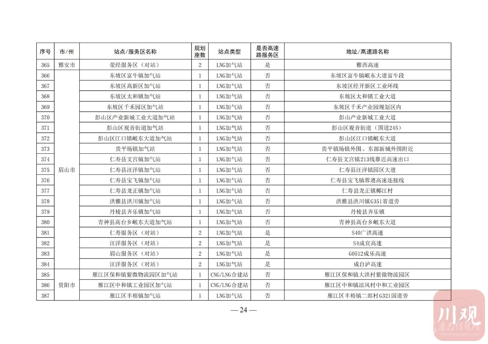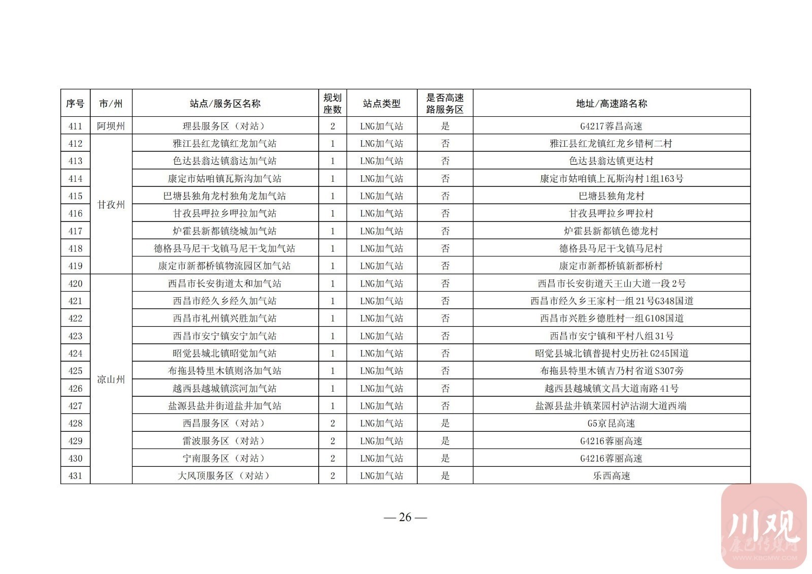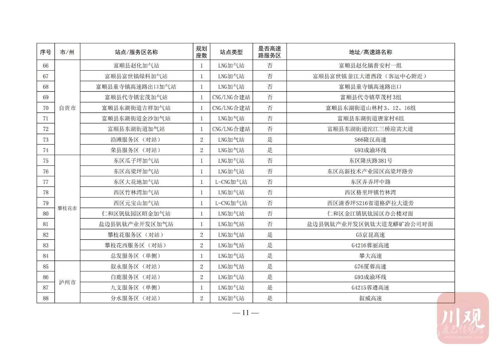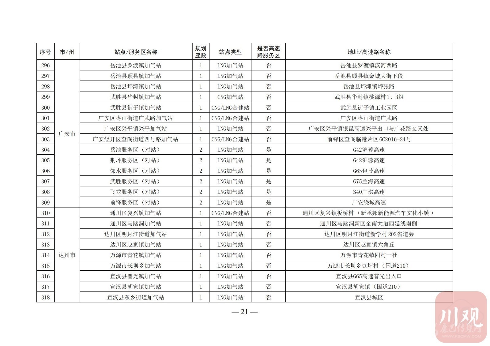 日前,四川省發(fā)展和改革委員會、四川省能源局印發(fā)《四川省天然氣汽車加氣站布局方案(2021-2025年)》(以下簡稱《方案》)。《方案》提出到2025年,四川將規(guī)劃新建加氣站500座(含高速公路服務(wù)區(qū)141座),其中,CNG加氣站15座、LNG加氣站401座、L-CNG加氣站8座、CNG/LNG合建站76座。