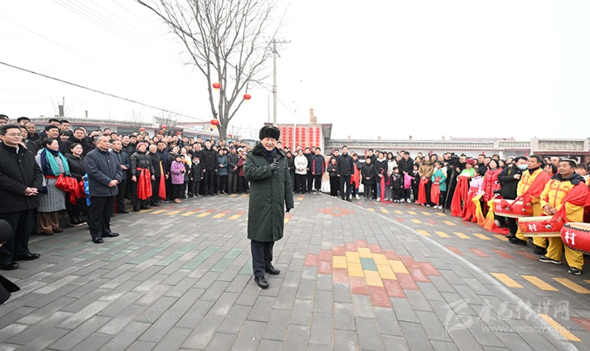 村文化廣場(chǎng)上十分熱鬧,村民們打起威風(fēng)鑼鼓、扭起秧歌歡慶佳節(jié)??吹娇倳泚砹?,人們高興地歡呼起來。習(xí)近平對(duì)鄉(xiāng)親們說,我們黨的根本宗旨就是為人民群眾辦好事,為人民群眾幸福生活拼搏、奉獻(xiàn)、服務(wù)。我們?nèi)缙诖蜈A了脫貧攻堅(jiān)戰(zhàn),如期實(shí)現(xiàn)了全面建成小康社會(huì)目標(biāo),現(xiàn)在踏上了全面建設(shè)社會(huì)主義現(xiàn)代化國(guó)家新征程。建設(shè)現(xiàn)代化國(guó)家離不開農(nóng)業(yè)農(nóng)村現(xiàn)代化,要繼續(xù)鞏固脫貧攻堅(jiān)成果,扎實(shí)推進(jìn)鄉(xiāng)村振興,讓群眾生活更上一層樓,在推進(jìn)農(nóng)業(yè)農(nóng)村現(xiàn)代化中越走越有奔頭。