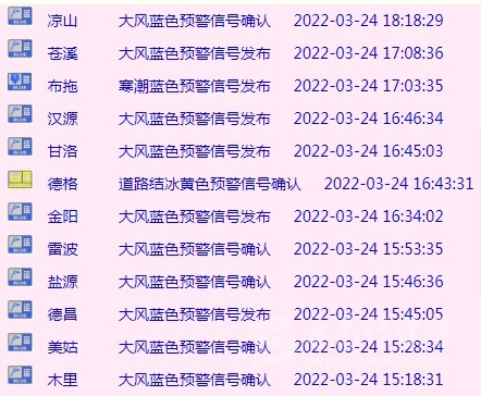 24小時內(nèi),四川多地大風(fēng)藍(lán)色預(yù)警信號生效中↘