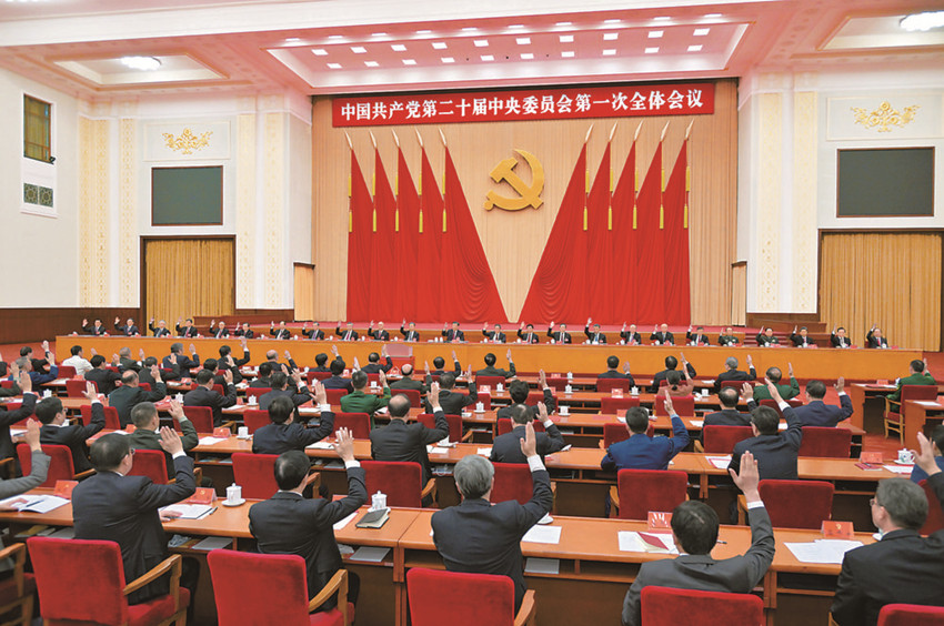 10月23日,中國共產(chǎn)黨第二十屆中央委員會(huì)第一次全體會(huì)議在北京人民大會(huì)堂舉行。 新華社記者 李濤 攝