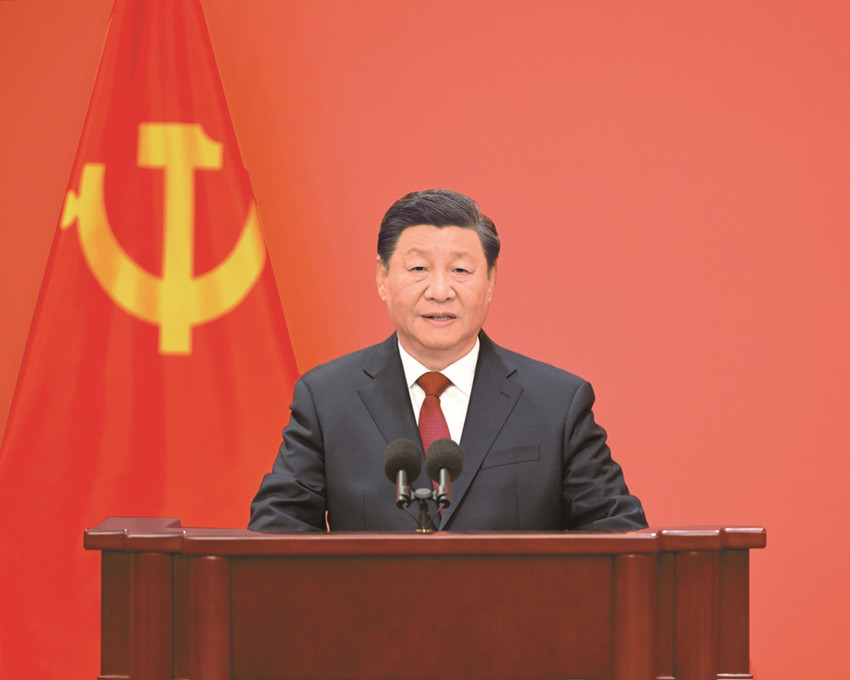 10月23日,剛剛在中國共產(chǎn)黨第二十屆中央委員會(huì)第一次全體會(huì)議上當(dāng)選的中共中央總書記習(xí)近平和中共中央政治局常委李強(qiáng)、趙樂際、王滬寧、蔡奇、丁薛祥、李希在北京人民大會(huì)堂同采訪中共二十大的中外記者親切見面。這是習(xí)近平發(fā)表重要講話。 新華社記者 李學(xué)仁 攝