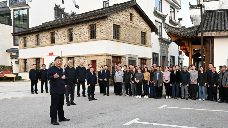 △10月11日,習(xí)近平總書記在上饒市婺源縣秋口鎮(zhèn)王村石門自然村考察時,同村民們親切交流。