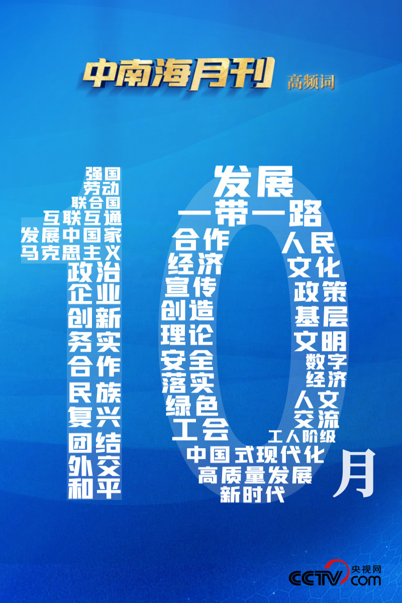 央視網(wǎng)《中南海月刊》運用智能大數(shù)據(jù),與您一起回顧金秋10月的中華大地,在習(xí)近平新時代中國特色社會主義思想的引領(lǐng)下,奮進(jìn)前行的腳步。