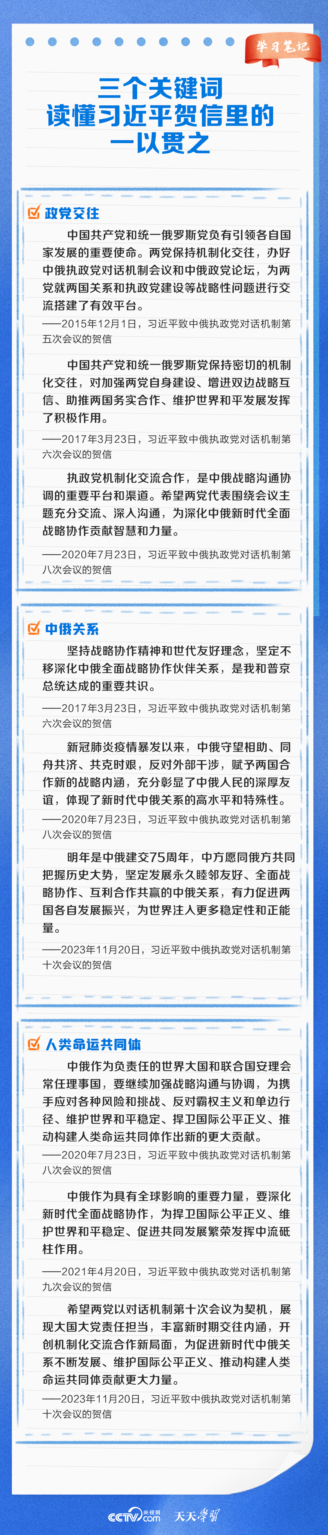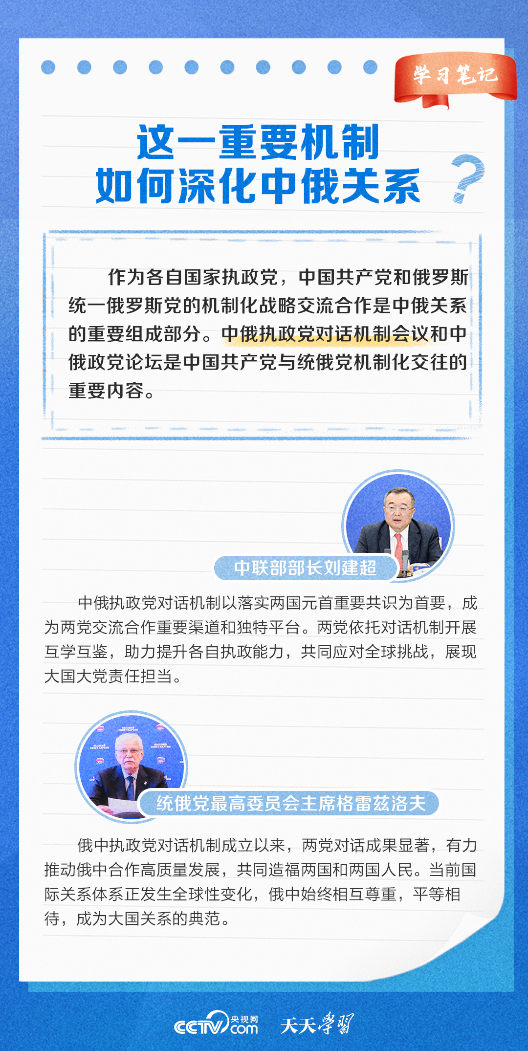 天天學(xué)習(xí)11月20日,中俄執(zhí)政黨對(duì)話機(jī)制第十次會(huì)議以視頻方式舉辦。習(xí)近平總書(shū)記同普京總統(tǒng)分別向會(huì)議致賀信。習(xí)近平總書(shū)記在賀信中強(qiáng)調(diào),中俄執(zhí)政黨對(duì)話機(jī)制已發(fā)展成為兩國(guó)鞏固政治互信、密切戰(zhàn)略協(xié)作、推進(jìn)互利合作的獨(dú)特渠道和平臺(tái)。