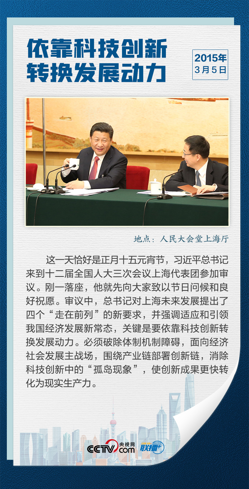 上海是我國(guó)最大的經(jīng)濟(jì)中心城市,是全國(guó)改革開(kāi)放的排頭兵、創(chuàng)新發(fā)展的先行者,習(xí)近平曾多次深入上海各地區(qū)調(diào)研,多次參加全國(guó)兩會(huì)上海代表團(tuán)審議,“科技創(chuàng)新”是他反復(fù)強(qiáng)調(diào)的關(guān)鍵詞。