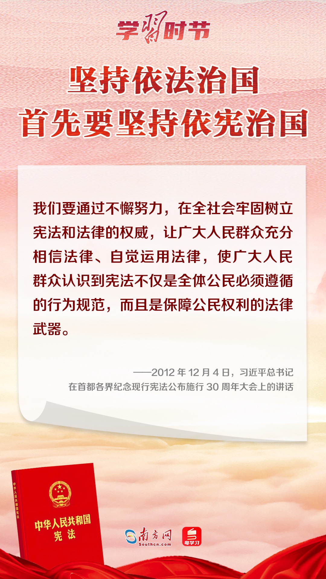 12月4日是我國第十個國家憲法日,在這個重要的時刻,讓我們一同回顧習(xí)近平總書記關(guān)于憲法的重要論述。