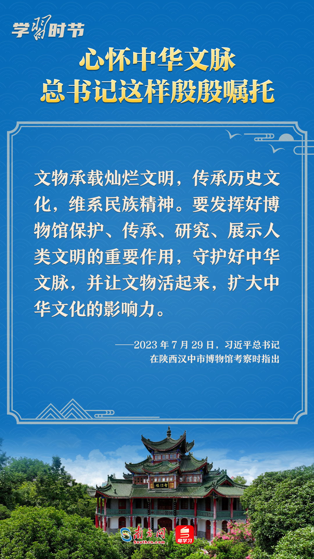 習(xí)近平總書記強(qiáng)調(diào),只有全面深入了解中華文明的歷史,才能更有效地推動(dòng)中華優(yōu)秀傳統(tǒng)文化創(chuàng)造性轉(zhuǎn)化、創(chuàng)新性發(fā)展,更有力地推進(jìn)中國(guó)特色社會(huì)主義文化建設(shè),建設(shè)中華民族現(xiàn)代文明?;赝?023,總書記多次就中華文化傳承發(fā)展作出重要闡述。讓我們一起學(xué)習(xí),一同賡續(xù)歷史文脈、譜寫當(dāng)代華章。