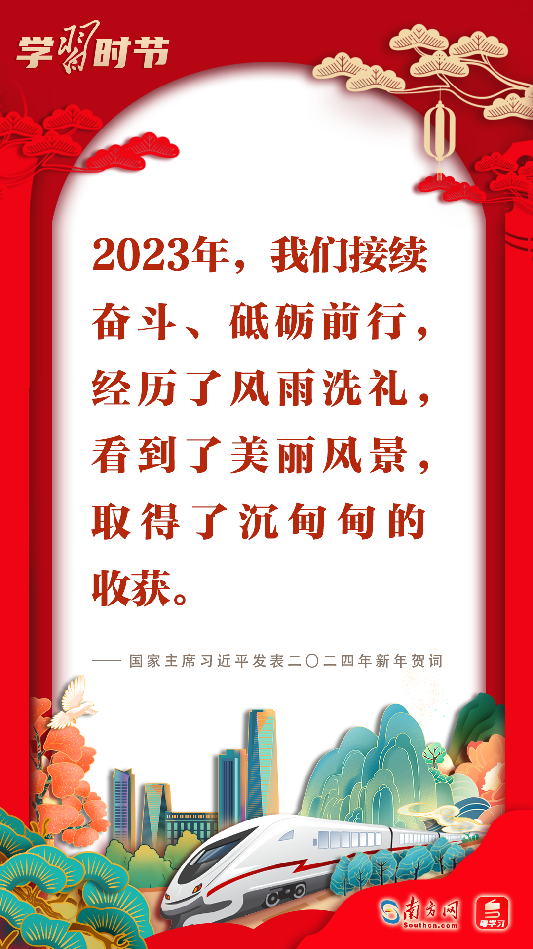 2023年12月31日晚,國家主席習(xí)近平在北京發(fā)表二〇二四年新年賀詞。賀詞飽含對廣大人民群眾的深情,彰顯對中國發(fā)展的堅(jiān)定信心?;厥走^往,展望未來;砥礪前行,征程再起。讓我們一起在習(xí)近平主席的新年賀詞中感受直抵心靈的溫暖、催人奮進(jìn)的力量!