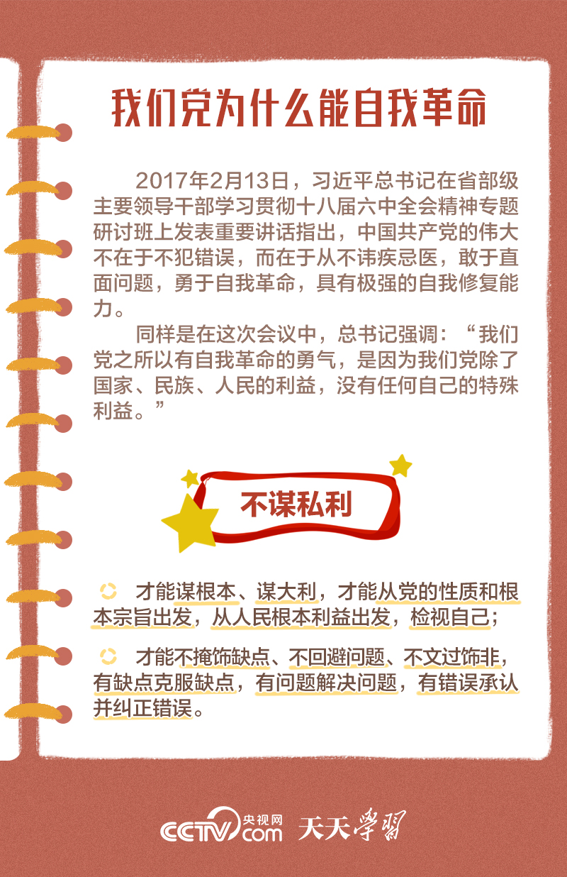 天天學(xué)習(xí)“在新時(shí)代十年全面從嚴(yán)治黨的實(shí)踐和理論探索中,我們不斷深化對黨的自我革命的認(rèn)識,積累了豐富實(shí)踐經(jīng)驗(yàn),形成了一系列重要理論成果,系統(tǒng)回答了我們黨為什么要自我革命、為什么能自我革命、怎樣推進(jìn)自我革命等重大問題?!?月8日,習(xí)近平總書記在中國共產(chǎn)黨第二十屆中央紀(jì)律檢查委員會第三次全體會議上發(fā)表重要講話。
