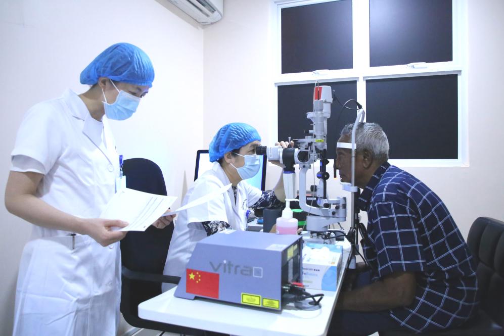 ??69歲的艾哈邁德·卡洛是中國醫(yī)療隊(duì)“光明行”活動(dòng)的獲益者。兩個(gè)兒子曾帶著患有眼疾多年的老人輾轉(zhuǎn)多家醫(yī)院,均因手術(shù)難度大而無法得到有效治療。2023年,中國醫(yī)療隊(duì)醫(yī)生經(jīng)過充分評(píng)估后,給老人成功實(shí)施了手術(shù)。術(shù)后揭開眼罩時(shí),老人家激動(dòng)地說:“醫(yī)生,我可以看到你的胸牌了,謝謝你!”老人的兒子也在社交媒體發(fā)帖說:“真誠感謝中國醫(yī)生?!背酥尾?,中方還著力培訓(xùn)當(dāng)?shù)蒯t(yī)務(wù)人員,力爭為當(dāng)?shù)卮蛟煲恢А皫Р蛔摺钡难劭茖<谊?duì)伍。