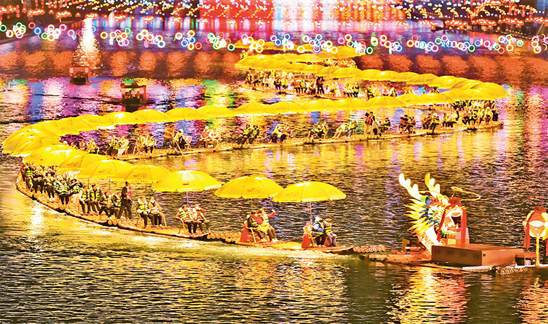 我國堅持把恢復擴大消費擺在優(yōu)先位置,相繼出臺一系列促消費政策,消費市場恢復向好,消費的基礎性作用更加顯著。圖為2024年2月11日,游客在湖北省恩施土家族苗族自治州宣恩縣城貢水河休閑賞夜景。 新華社發(fā) 宋文/攝