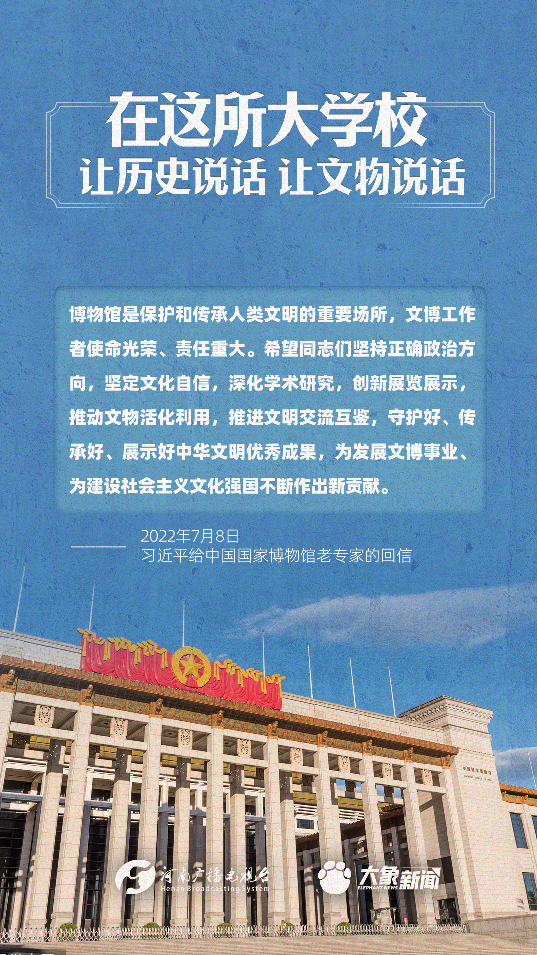 習(xí)近平總書(shū)記一直高度重視博物館工作,多次作出重要講話(huà),強(qiáng)調(diào)“一個(gè)博物院就是一所大學(xué)校”,指出“讓歷史說(shuō)話(huà),讓文物說(shuō)話(huà)”,要求“守護(hù)好、傳承好、展示好中華文明優(yōu)秀成果”等等,金句連連。大象新聞進(jìn)行了認(rèn)真梳理,邀您一起學(xué)習(xí)。