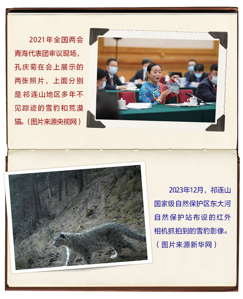 2021年3月7日,在全國兩會(huì)青海代表團(tuán)審議現(xiàn)場(chǎng),孔慶菊代表拿出的兩張“大萌貓”照片,吸引了習(xí)近平的目光。