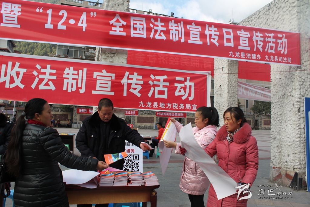 在活動現(xiàn)場,各單位采取以通過發(fā)放法制宣傳資料、法制日歷掛圖、現(xiàn)場進(jìn)行法律咨詢、展出法制圖片展板、懸掛橫幅等靈活多樣的宣傳方式,多角度、多層次地宣傳了《憲法》、《九龍縣“六五“普法宣傳手冊》、《安全生產(chǎn)法》、《環(huán)境保護(hù)法》、《移民政策法律法規(guī)宣傳手冊》、《道路交通安全法》、《稅法》、《食品安全法》、《勞動合同法》、《森林防火條例》等與人民群眾密切相關(guān)的法律法規(guī)知識。