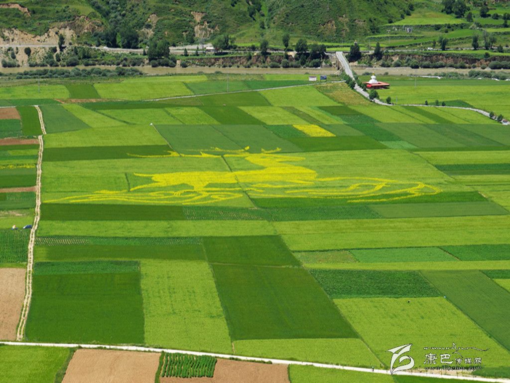 據(jù)了解,為增加游客旅游觀光的看點(diǎn)和蝦拉沱新村建設(shè)的亮點(diǎn),提高蝦拉沱新村乃至爐霍縣的知名度。今年該縣投資29.25萬(wàn)元在宜木鄉(xiāng)章達(dá)村集中5戶共計(jì)16畝土地作為該縣縣名種植基地,在蝦拉沱村集中13戶共計(jì)72畝土地作為吉祥金鹿圖案種植基地。在州縣技術(shù)人員的共同努力下,經(jīng)過(guò)土地選定劃分→土地整理→土壤施肥→青稞播種→放線編圖→開(kāi)溝覆膜步步細(xì)作,兩個(gè)圖案全部覆膜成型,之后又完成整個(gè)圖案油菜播種作業(yè)。由此建成蝦拉沱村以1500畝青稞連片為背景,用油菜繪制金鹿圖案的創(chuàng)意觀光農(nóng)業(yè)示范區(qū);章達(dá)村以1000畝青稞連片為背景,用油菜繪制“爐霍”兩字圖案的創(chuàng)意觀光農(nóng)業(yè)示范區(qū)。