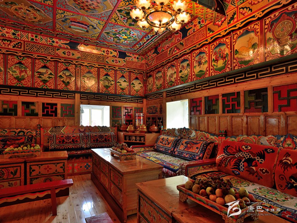 在功能布局上,打造別墅式風(fēng)格,對公共區(qū)域和每個院落進(jìn)行改造,擴(kuò)大綠化面積,強(qiáng)化視覺效果;在外觀設(shè)計上,根據(jù)藏族傳統(tǒng)的建筑風(fēng)格,提升風(fēng)貌改造,從外觀上體現(xiàn)原滋原味的本土特色;在色調(diào)搭配上,采用藏族偏愛的暖色調(diào)和古典色加以渲染,融合現(xiàn)代與民族特色;在室內(nèi)裝修上,使用精美的藏式地毯、銅器、陶制品等傳統(tǒng)藏式器皿裝飾,采用唐卡、藏族題材油畫等元素點綴,并適當(dāng)差異化裝修,以體現(xiàn)自然隨性舒適,讓游客透過每一個家庭感受到濃郁的藏寨風(fēng)情。