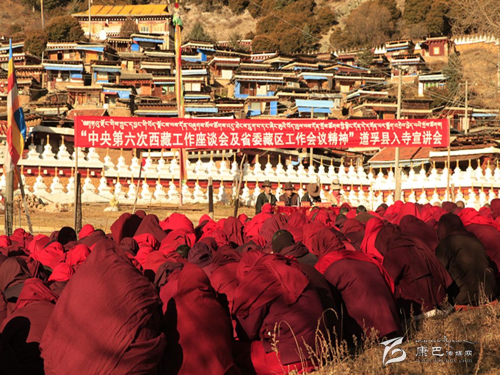 本網(wǎng)訊(記者 袁飛 文/圖)為有效引導(dǎo)僧尼增強(qiáng)國(guó)家意識(shí)、公民意識(shí)、法制意識(shí)和民族團(tuán)結(jié)意識(shí),增強(qiáng)對(duì)偉大祖國(guó)、中華民族、中華文化、社會(huì)主義道路的認(rèn)同感,11月13日至15日,按照省、州委統(tǒng)一安排部署,道孚縣“中央第六次西藏工作座談會(huì)及省委藏區(qū)工作會(huì)議精神”寺廟集中宣講活動(dòng)在靈雀寺、菜子坡覺(jué)姆寺、銅佛山覺(jué)姆寺舉行,761名僧尼到場(chǎng)聆聽(tīng)了宣講。這標(biāo)志著道孚縣寺廟集中宣講活動(dòng)進(jìn)入一個(gè)新的階段。