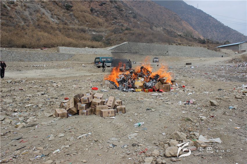 本網(wǎng)訊(謝靜 尼胡克布文/圖)3月15日,瀘定縣食品藥品工商質(zhì)量監(jiān)督管理局聯(lián)合司法局、發(fā)改局、農(nóng)牧局等相關部門以及煙草、桑吉卓瑪、瀘灃超市、電信等企業(yè),以“3.15”活動為契機,深入開展“新消費,我做主”年主題宣傳活動,現(xiàn)場接待了各類咨詢150余人(次),發(fā)放各種宣傳材料2000余份。宣傳活動結(jié)束后,縣食品藥品工商質(zhì)量監(jiān)督管理局將近期收繳的價值9.1余萬元的不合格食品、侵犯商標的商品,運送到垃圾場進行了焚毀。圖為焚燒現(xiàn)場。