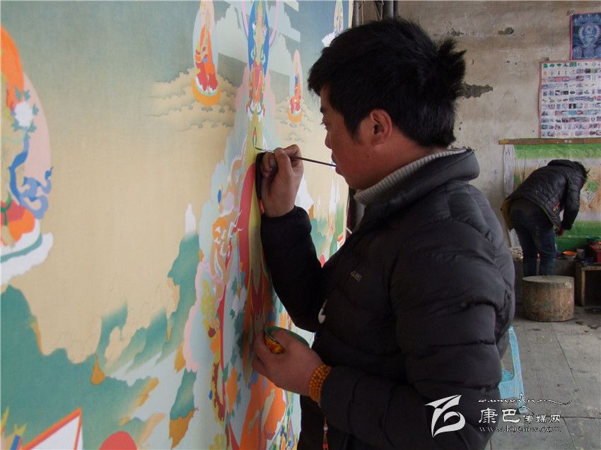 3月18日,在德格縣達(dá)馬鄉(xiāng)一間不起眼的藏族民居里,10多個(gè)青年農(nóng)民正在師傅澤批的精心指點(diǎn)下,學(xué)習(xí)唐卡繪畫技術(shù)。